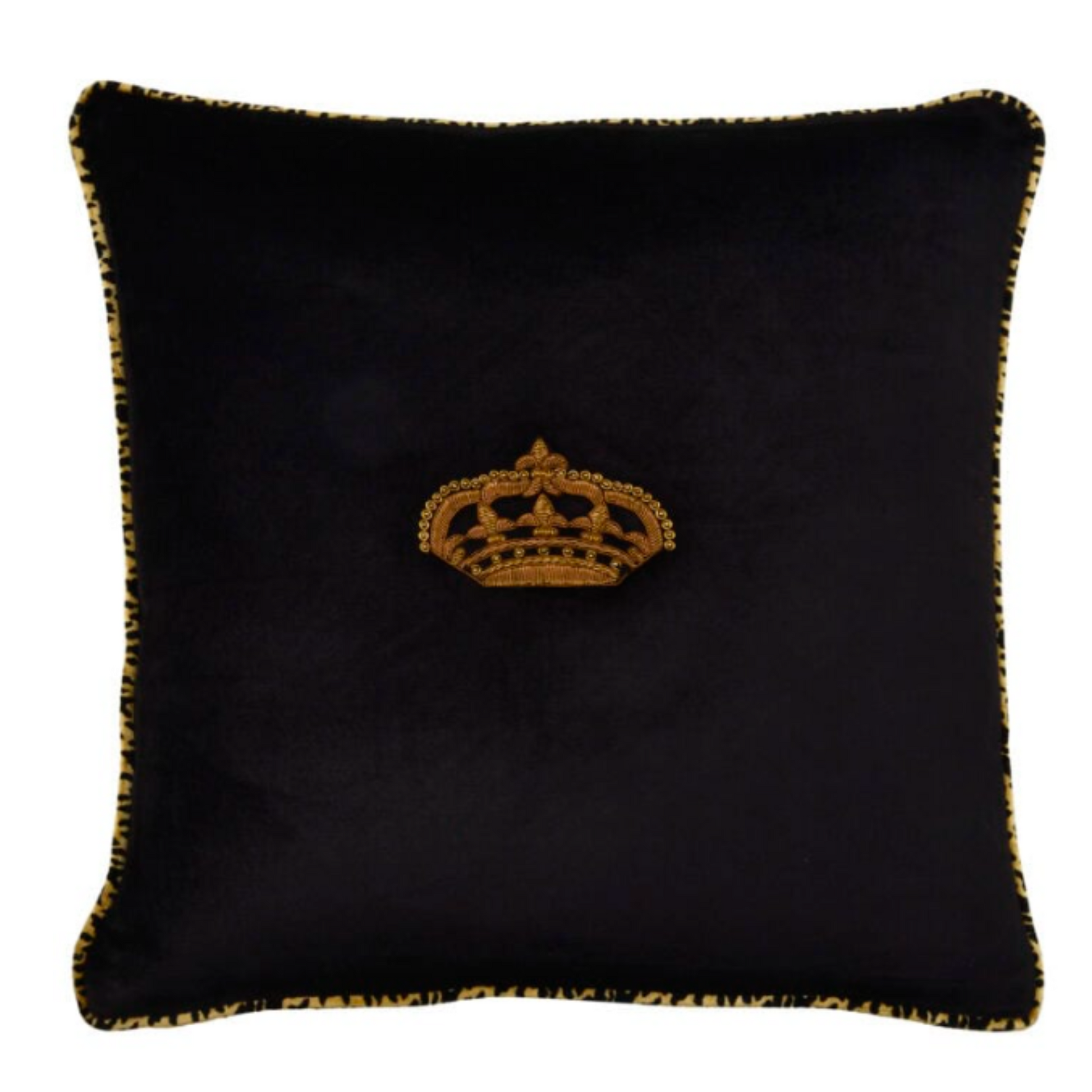 Crown on Black & Leopard Velvet Cushion | Square | PICK-UP INSTORE ONLY