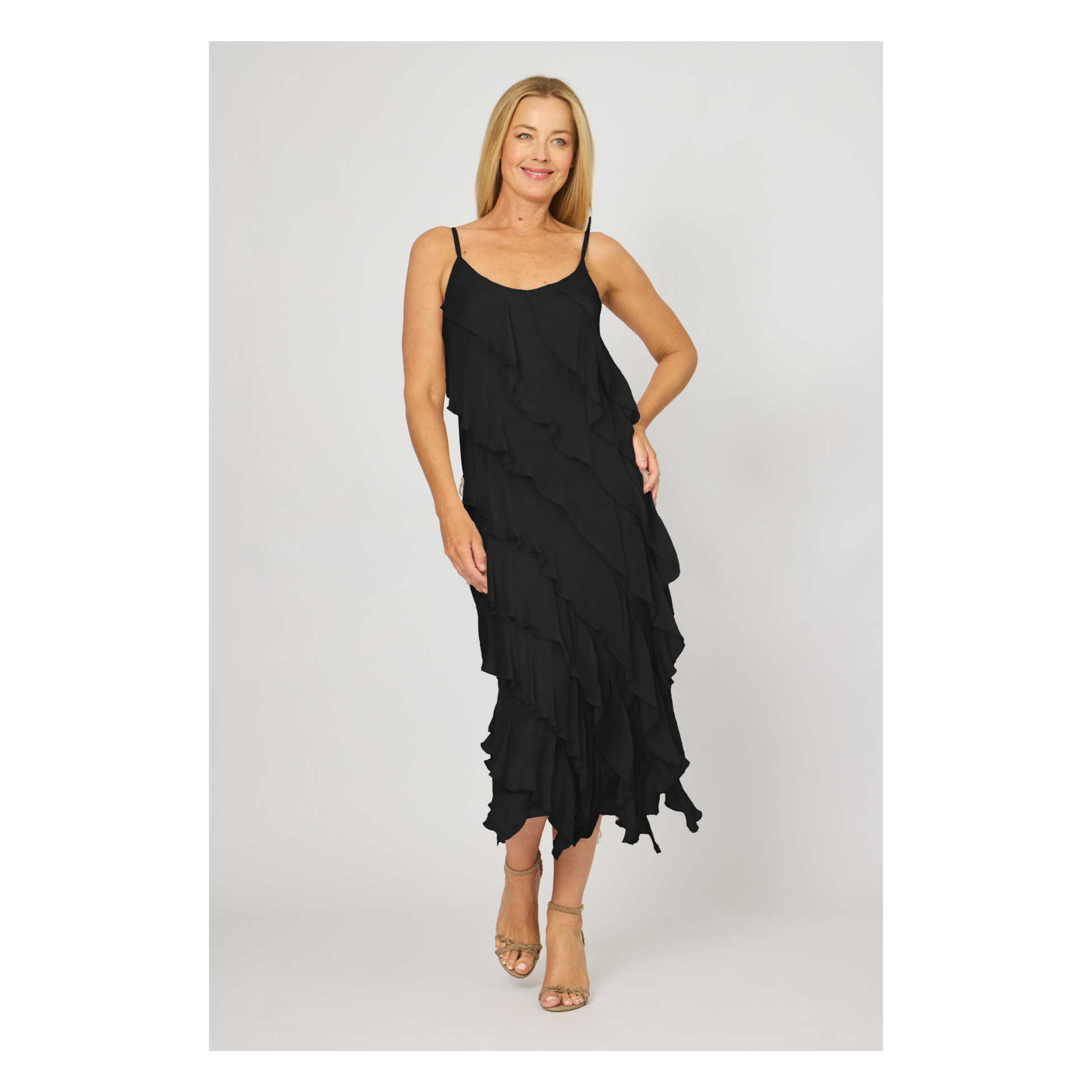 The Sophia Dress is a graceful blend of 30% silk and 70% viscose, offering a soft, fluid drape with a subtle sheen. Designed on the bias for a flattering fit, it features delicate ruffles and adjustable straps for effortless elegance. Perfect for day-to-night wear, this dress embodies refined simplicity and timeless style.