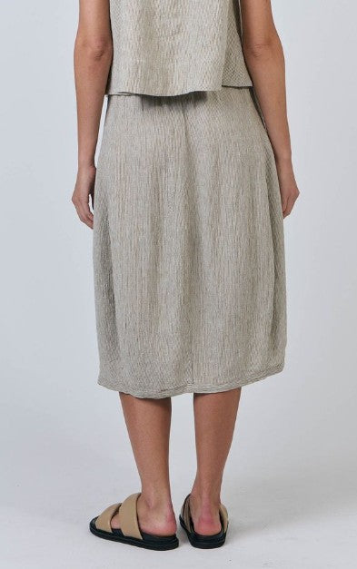 This relaxed midi skirt is all about understated elegance. Made from a lightweight, textured fabric with a subtle drawstring waist and handy pockets, it offers a breezy, comfortable fit perfect for warm days. Pair it with a matching top or a simple tee for a naturally effortless look.