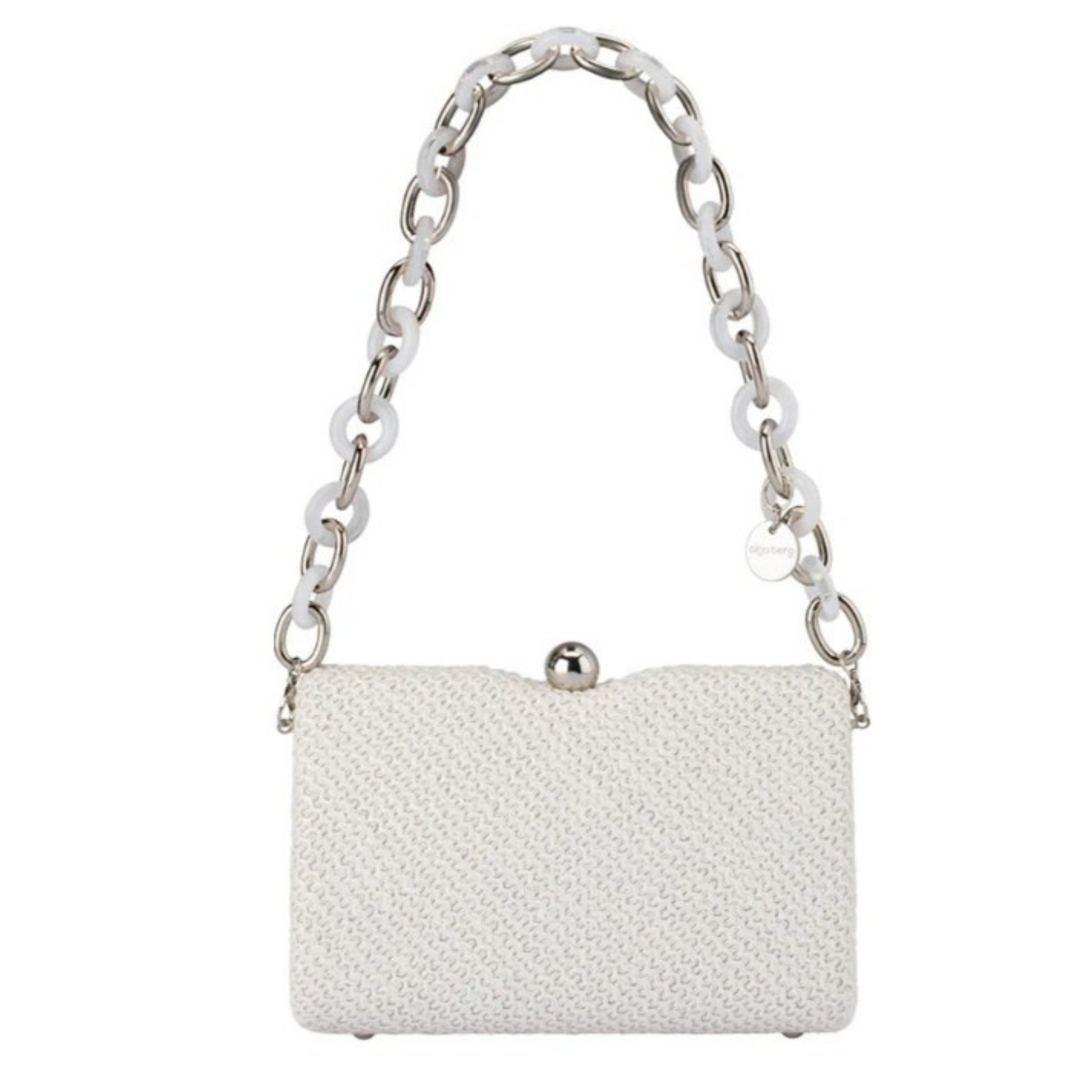 Effortlessly versatile, the Birdie Textural Handle Bag features a detachable acrylic top handle and a long shoulder chain, offering multiple styling options to suit your mood and occasion. This chic hardcase clutch showcases a sophisticated woven texture, paired with a classic single ball closure to keep your essentials secure. Roomy enough to hold a large smartphone, the Birdie bag combines practicality with stylish design - perfect for day-to-night wear.