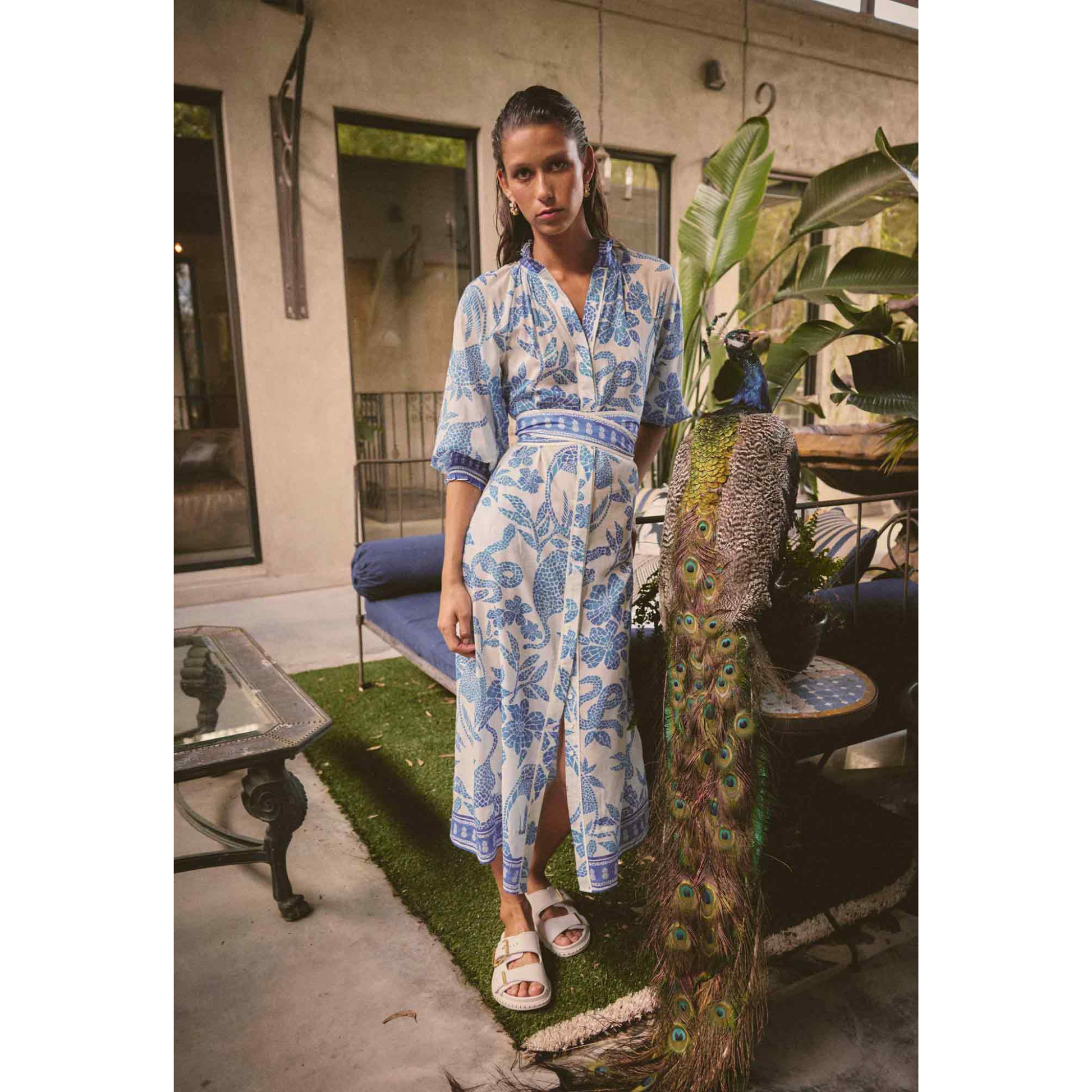 Once Was - Carmen Silk Cotton Maxi Dress | Azure Mosaic