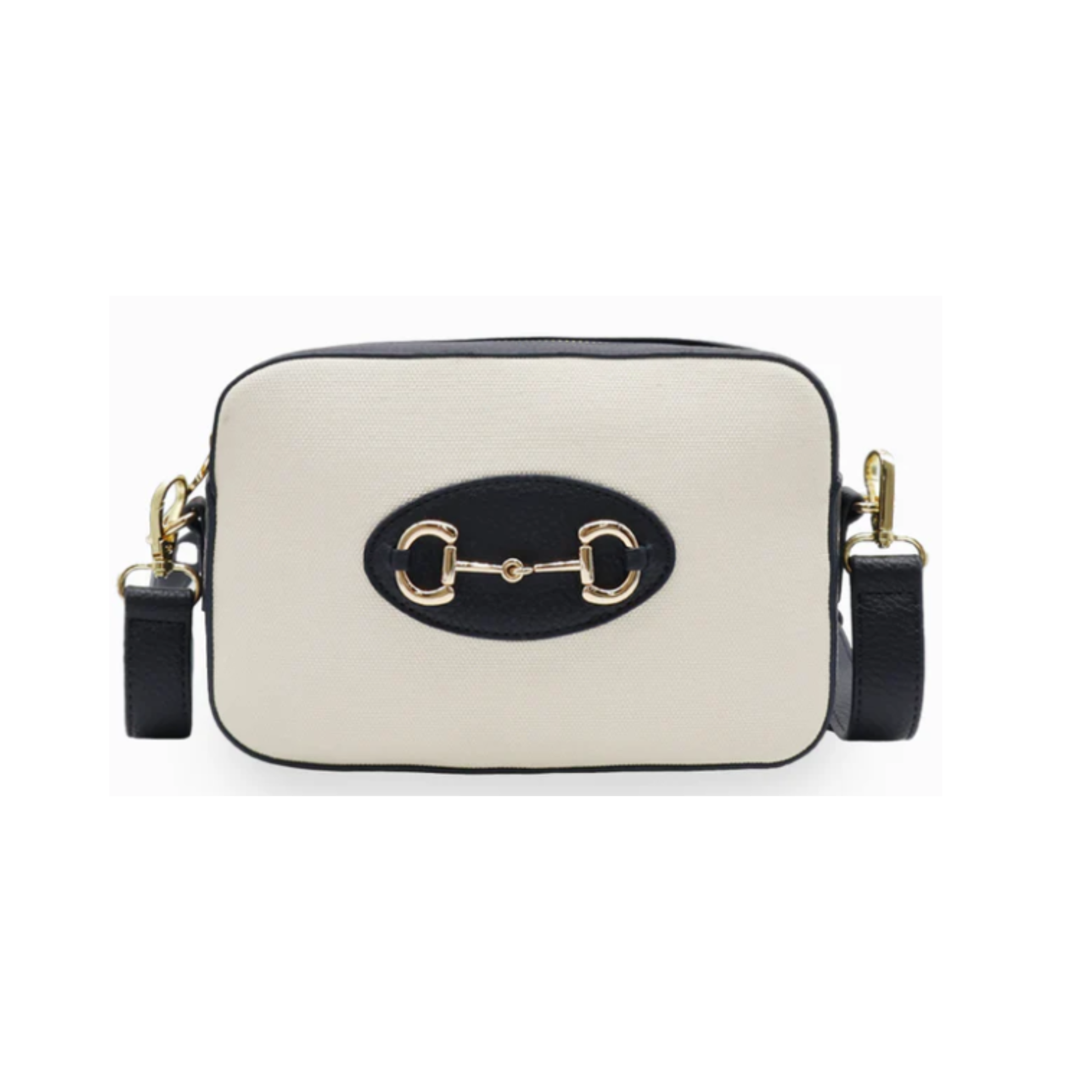 Chic and structured, the Oxford Bag perfectly balances elegance with everyday practicality. Its sophisticated two-tone design, polished gold hardware, and signature horse-bit detail nod to classic equestrian style, while the textured vegan leather and canvas-look body give it a refined, modern edge. Compact yet roomy enough for your essentials, the Oxford Bag transitions effortlessly from workdays to weekends — a timeless piece made for every occasion.